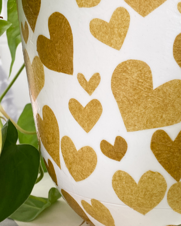 What a fun project! I love the way it turned out. The gold hearts give your pot a classy look! Thanks for sharing.