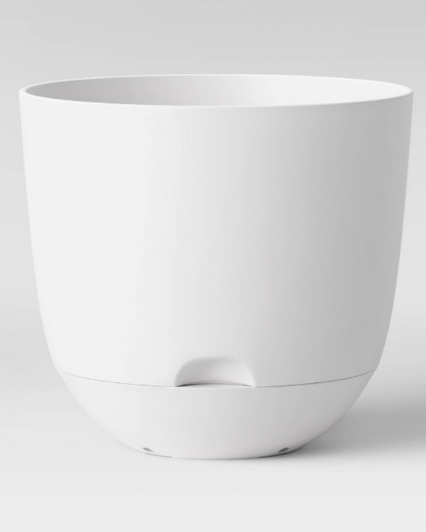 I decided to go with this inexpensive plastic planter from Target in white. The nice smooth surface worked great for decoupaging, and I loved the simple look of it.