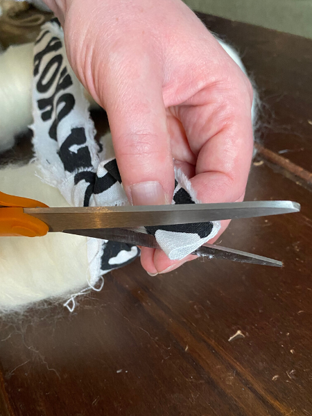 Next you want to trim off the excess ribbon leaving as much as you’d like, whatever looks good to you. Then you will want to cut the ends like this: